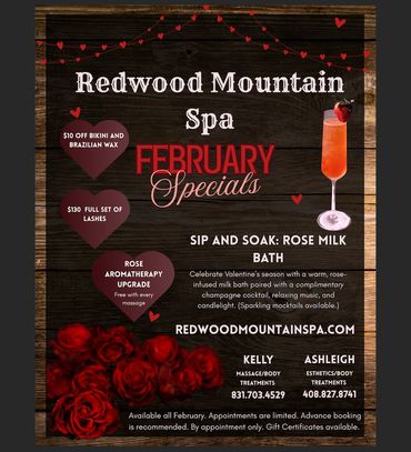 Call Kelly at (831) 703-4519 or Ashleigh at (408) 827-8741 for therapeutic tub appointments.